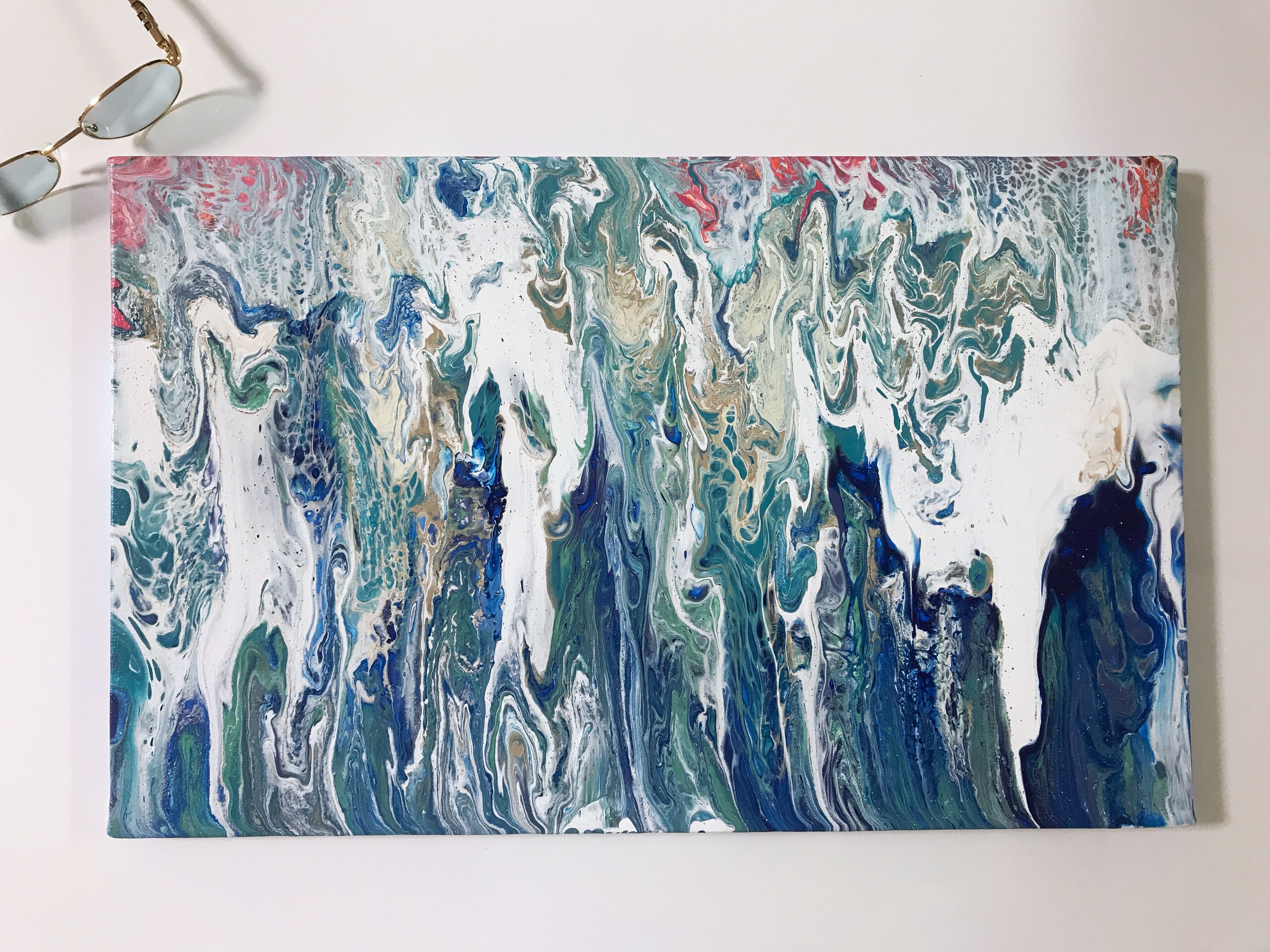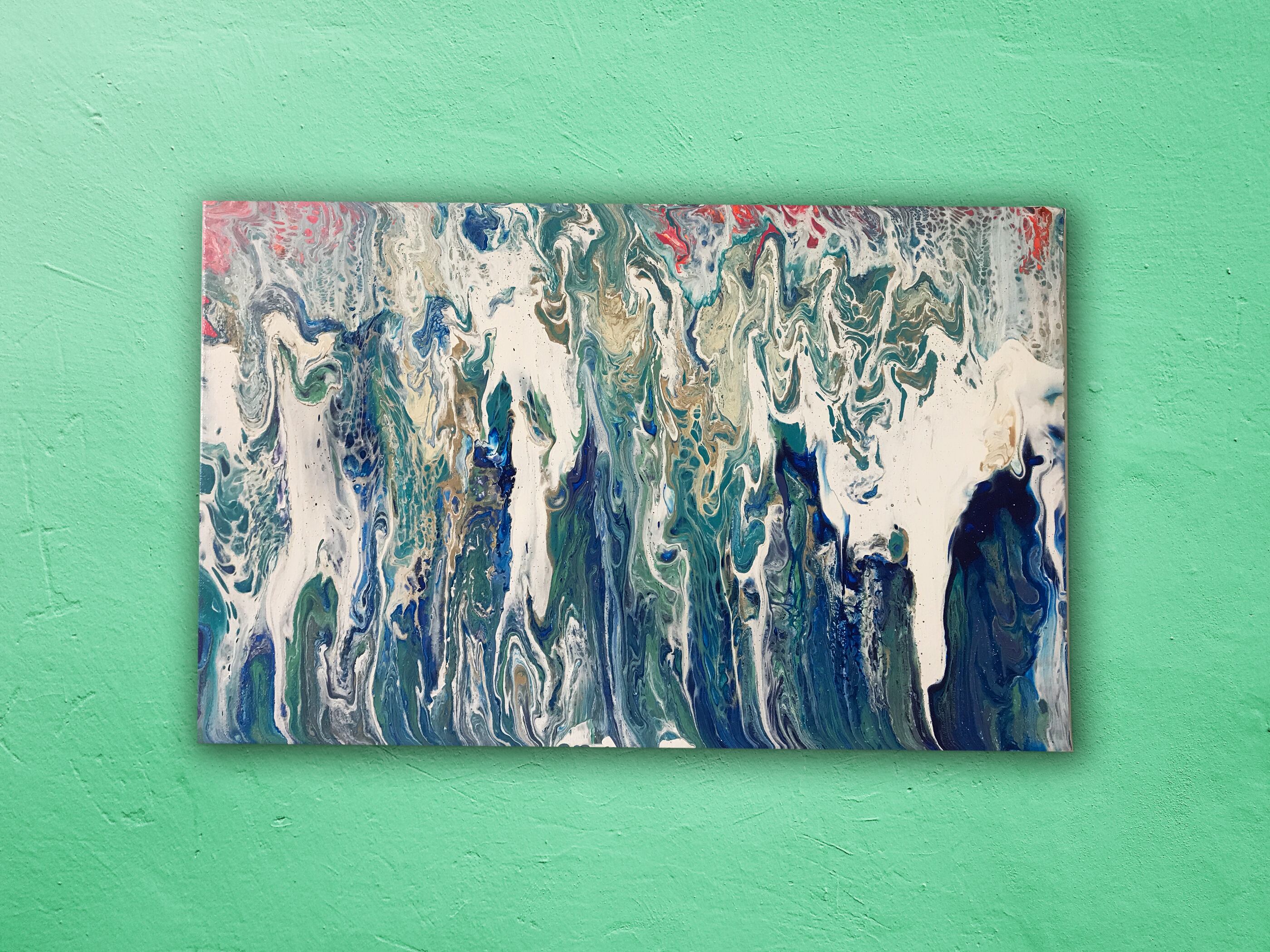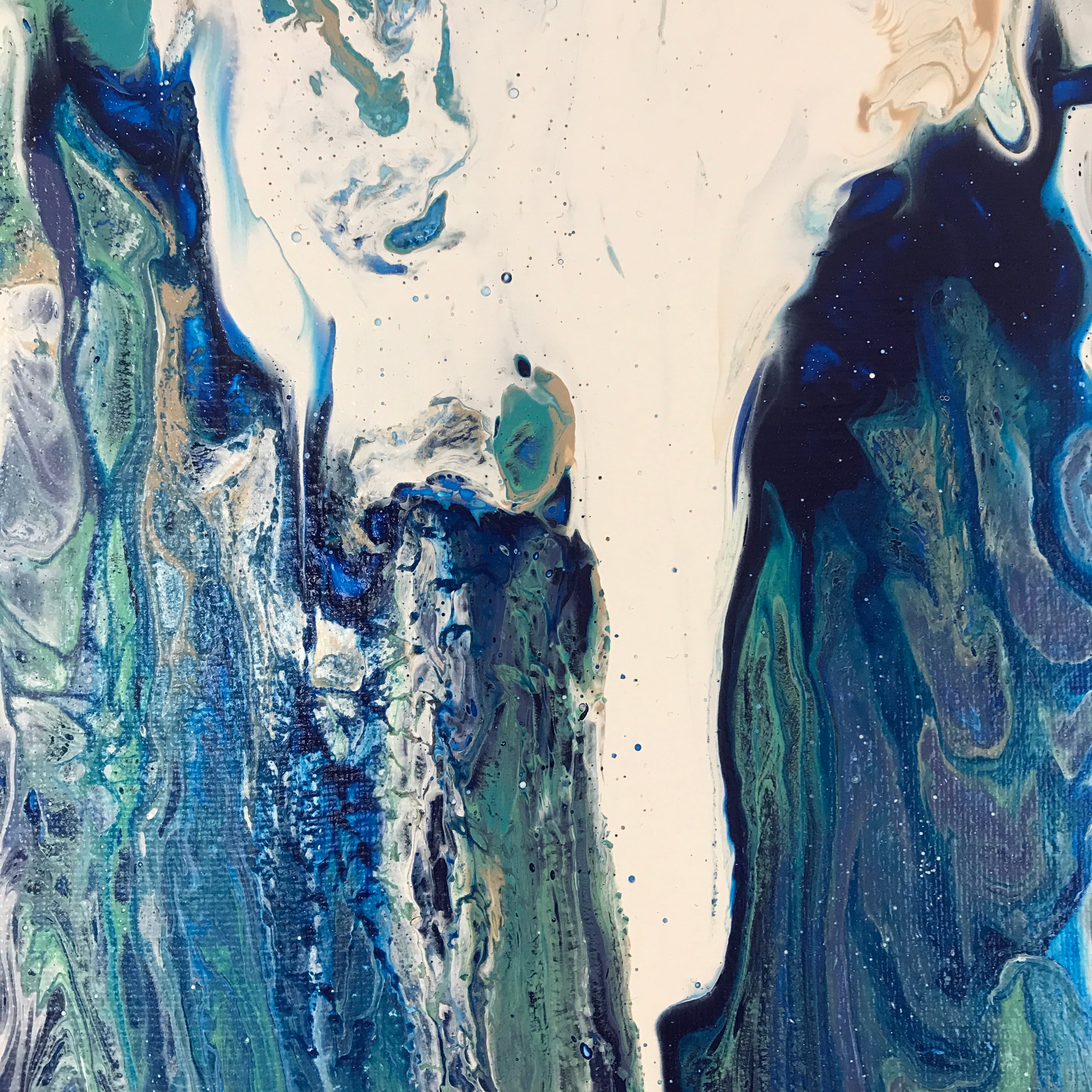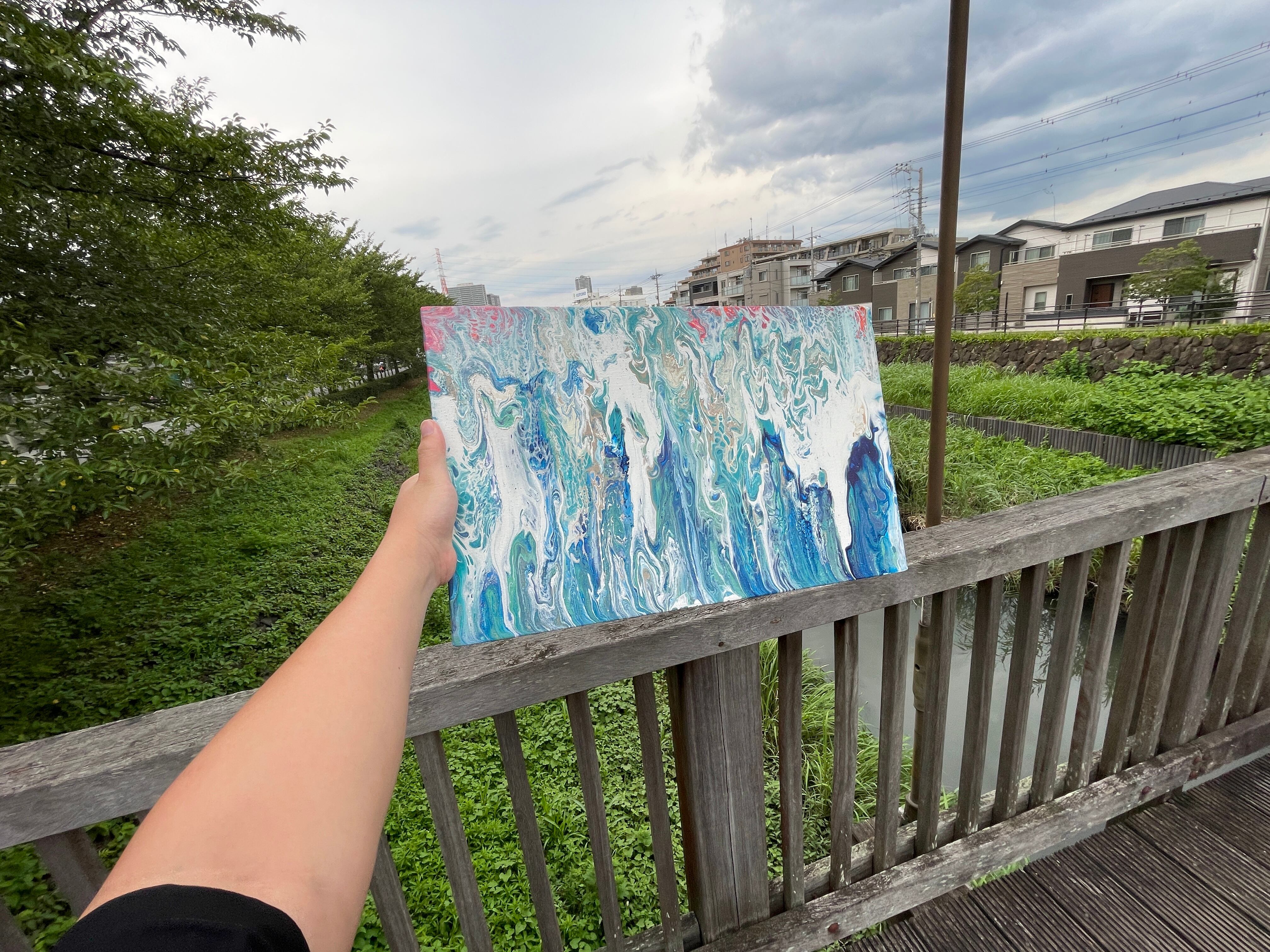 Pouring artをベースとしたオリジナルの方法で作成しております。色を調合する際の微妙な水分量のズレ、調合具合で起きる凹凸やひび割れなど、