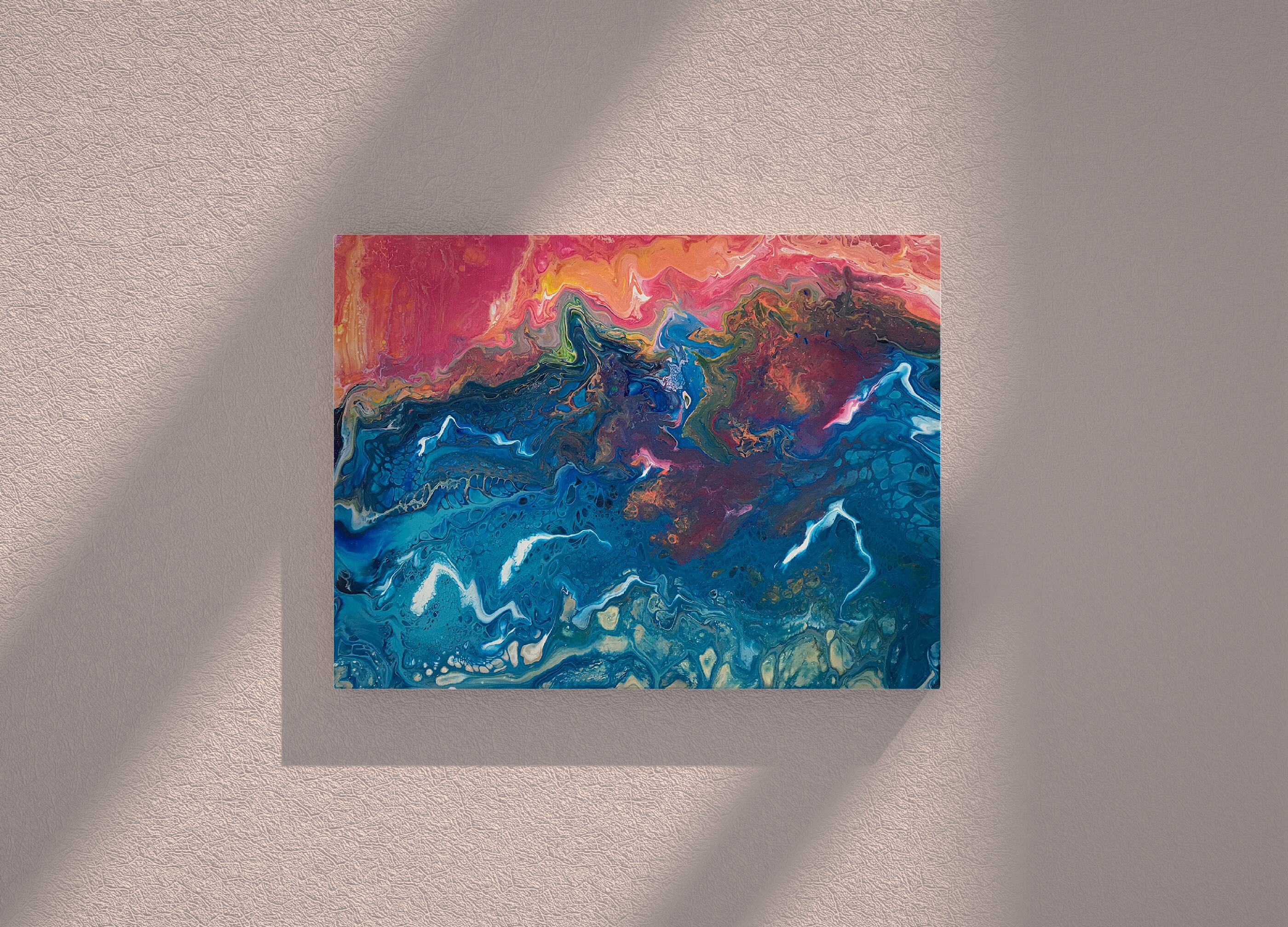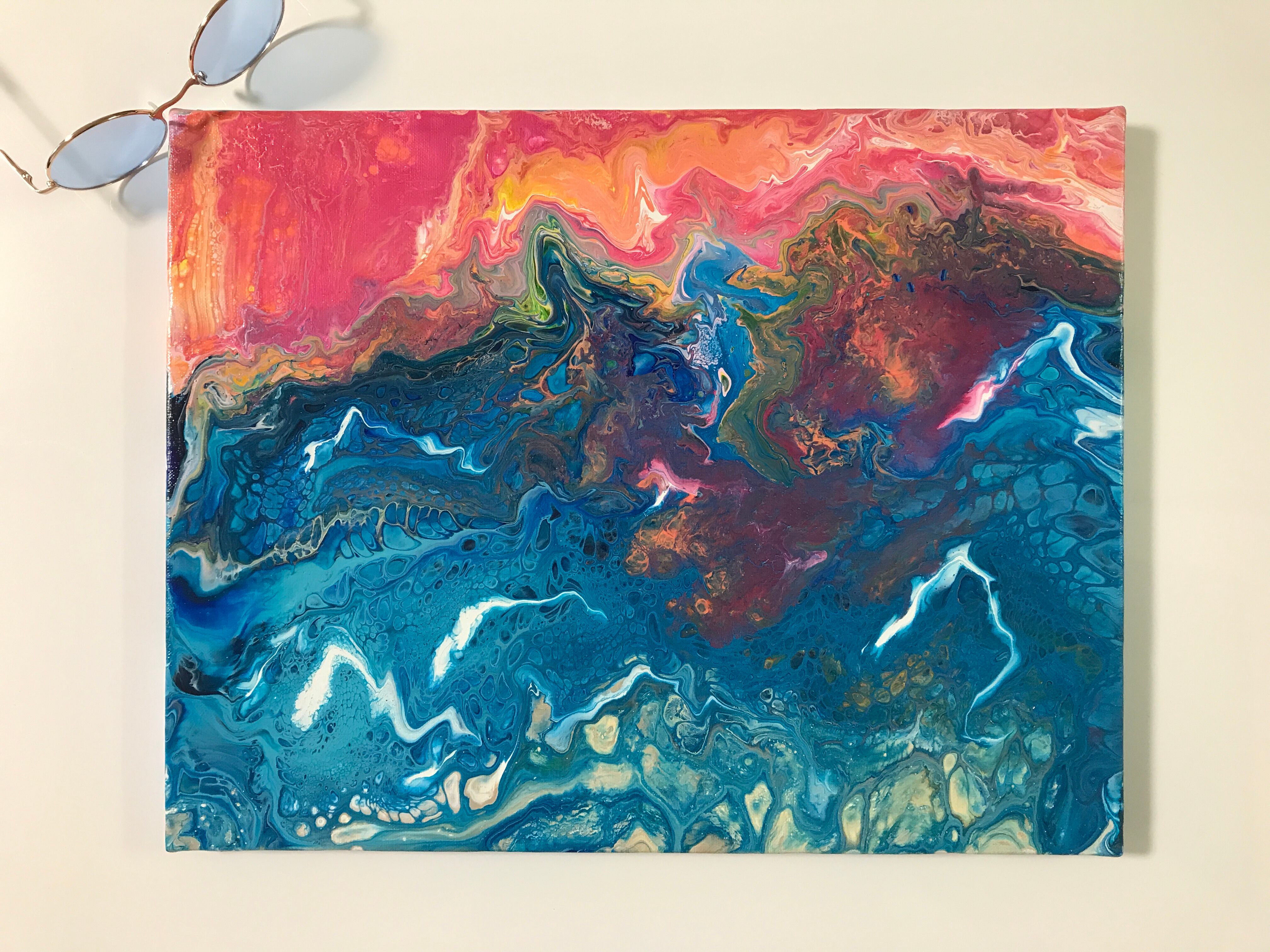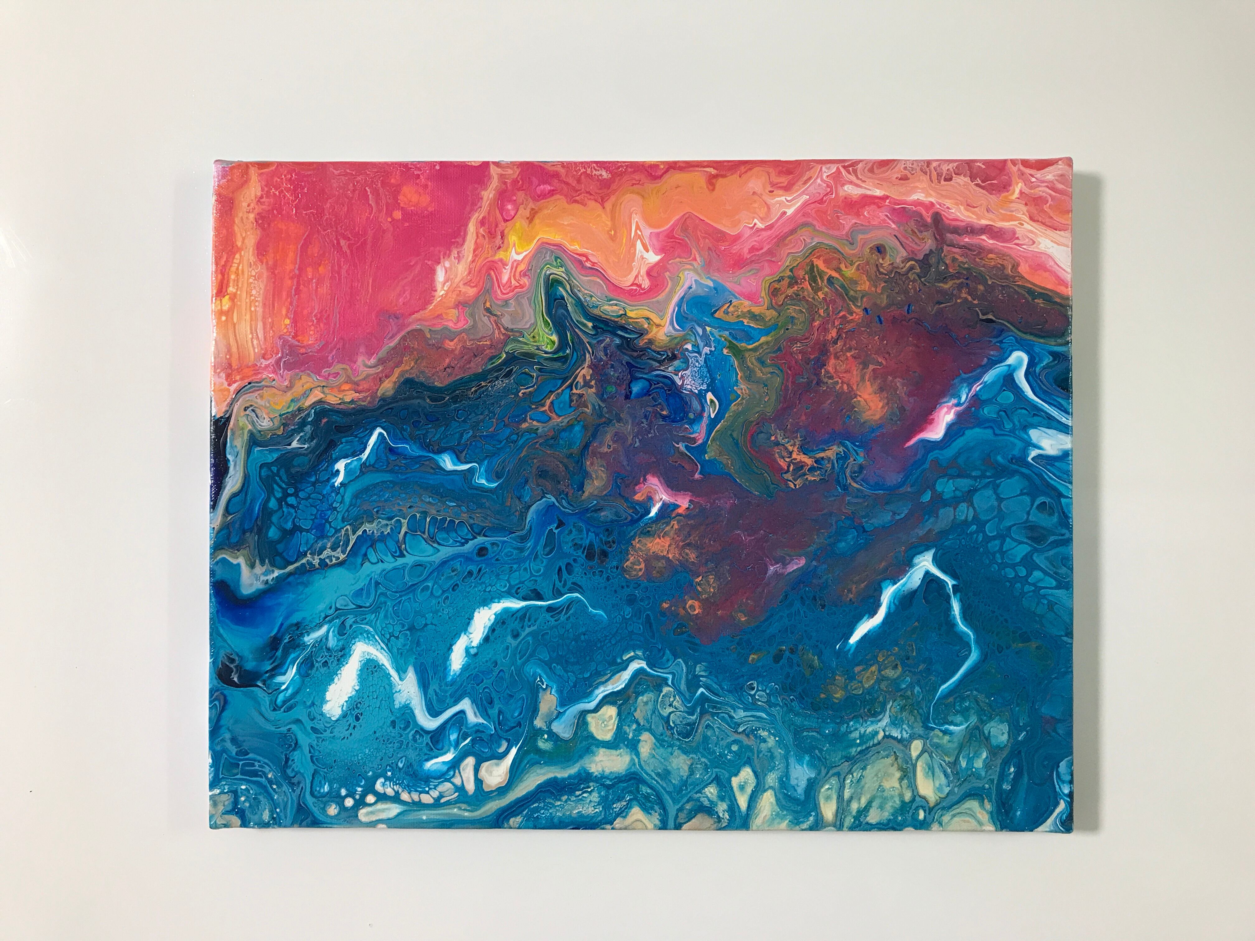 Pouring artをベースとしたオリジナルの方法で作成しております。色を調合する際の微妙な水分量のズレ、調合具合で起きる凹凸やひび割れなど、