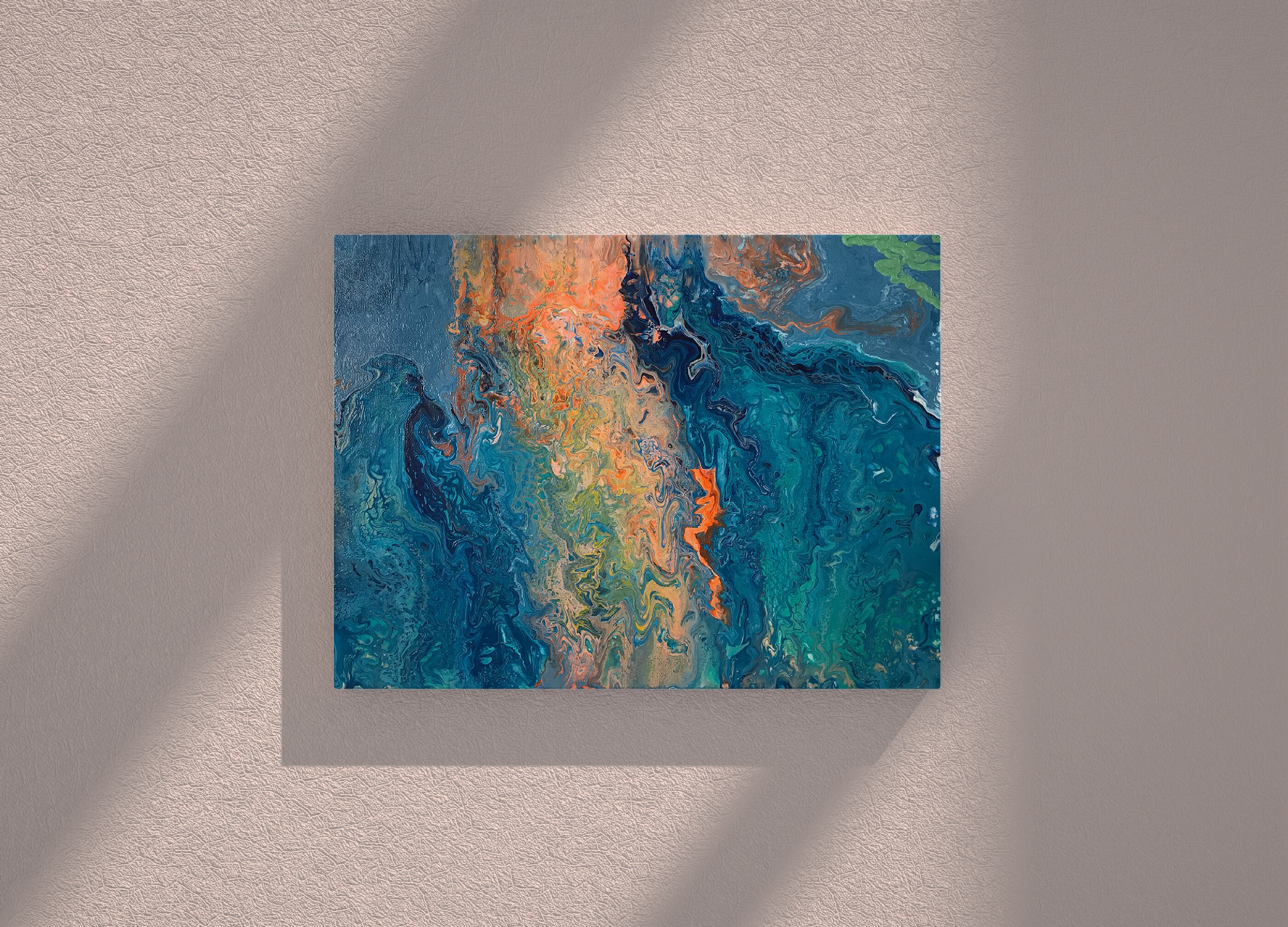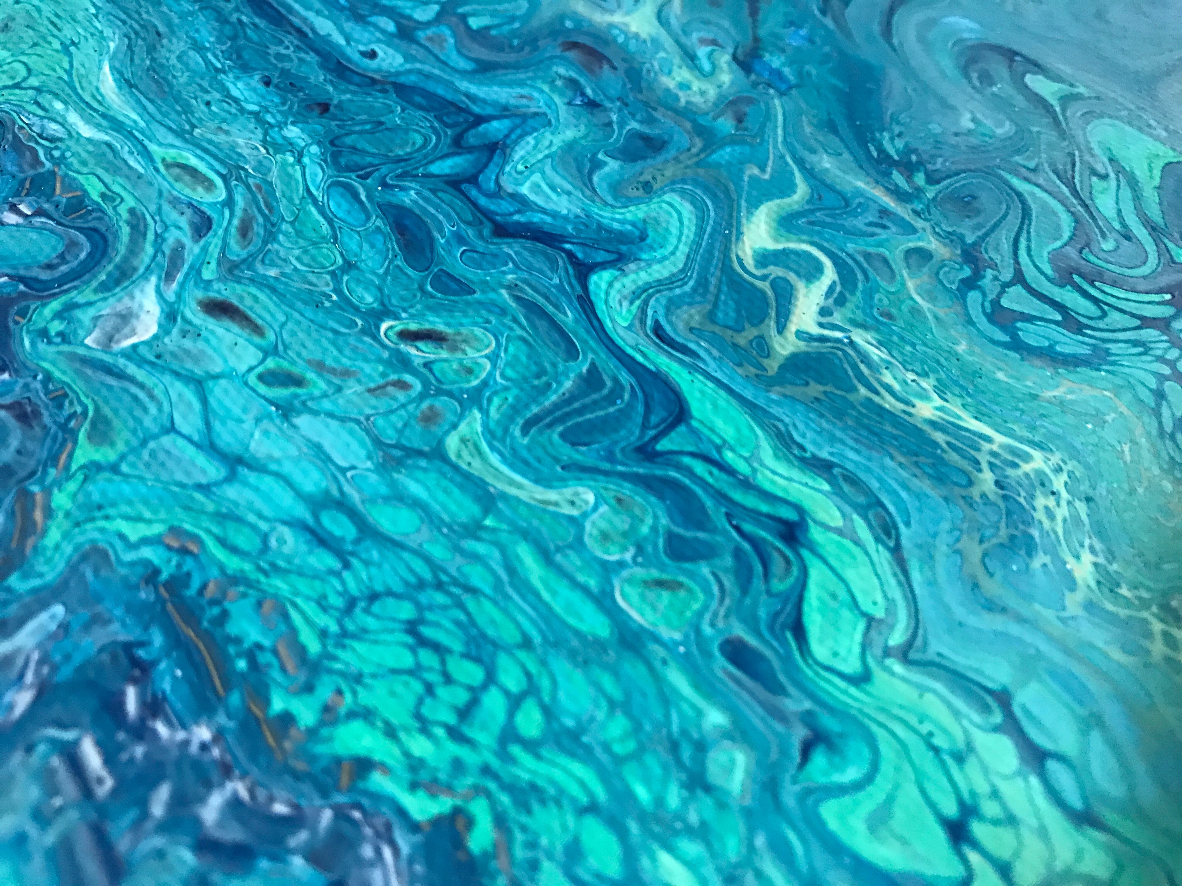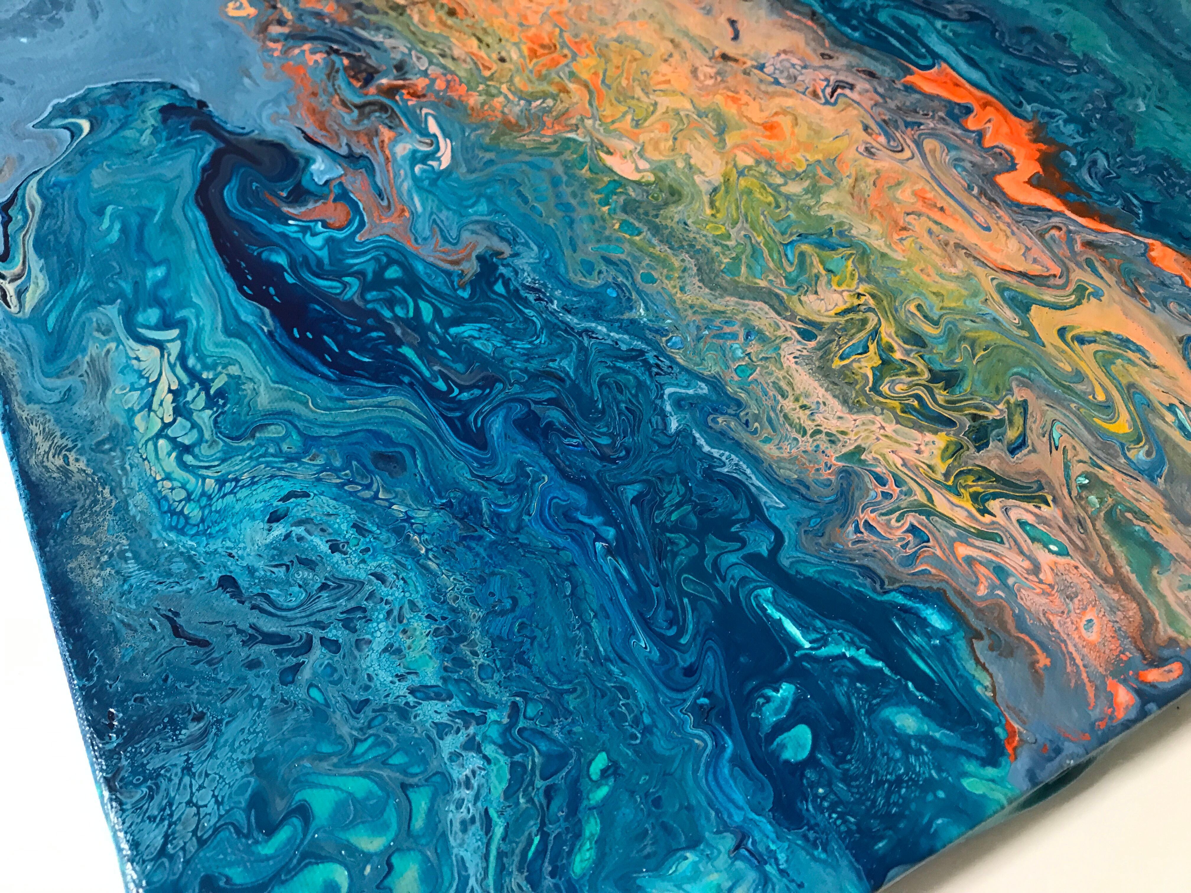 Pouring artをベースとしたオリジナルの方法で作成しております。色を調合する際の微妙な水分量のズレ、調合具合で起きる凹凸やひび割れなど、