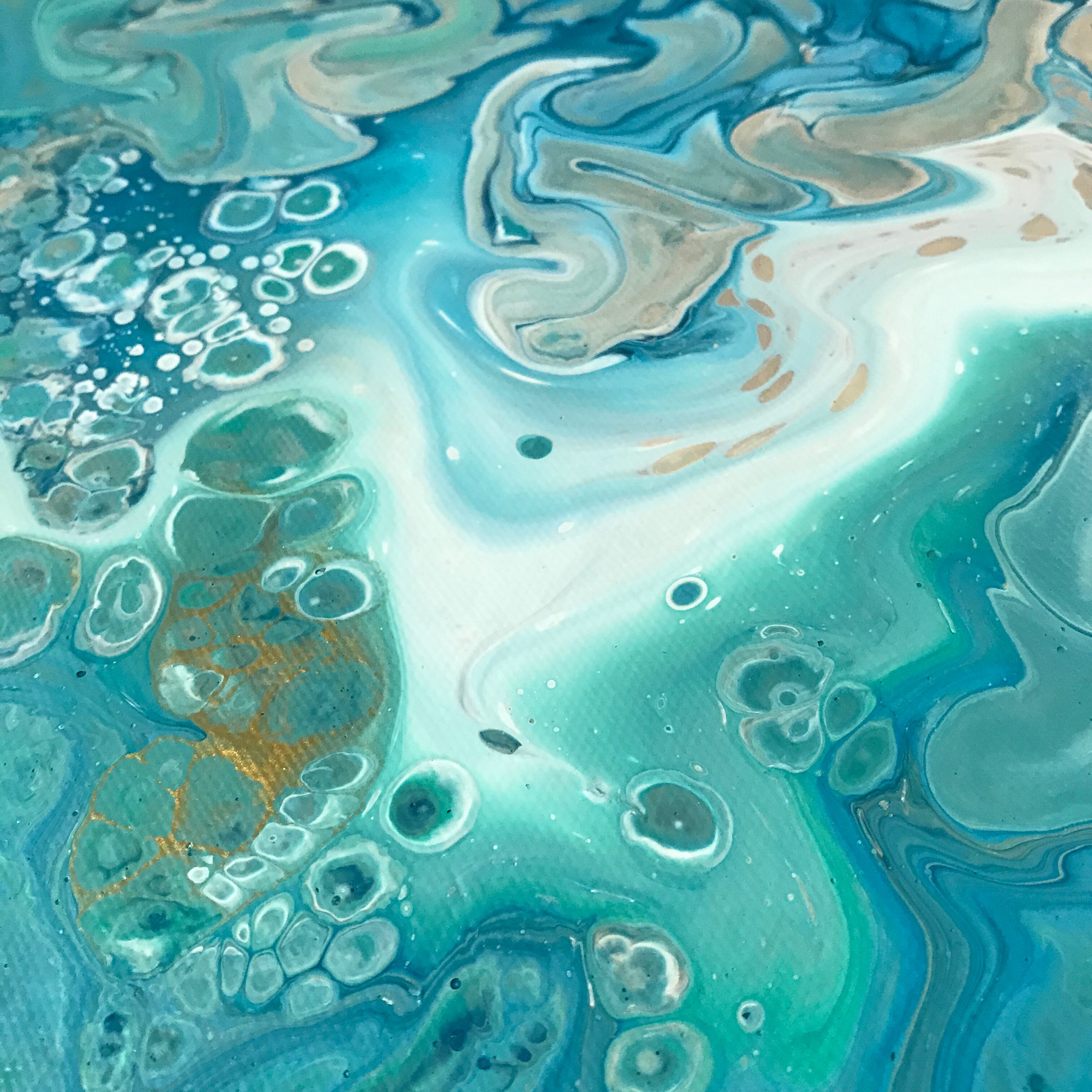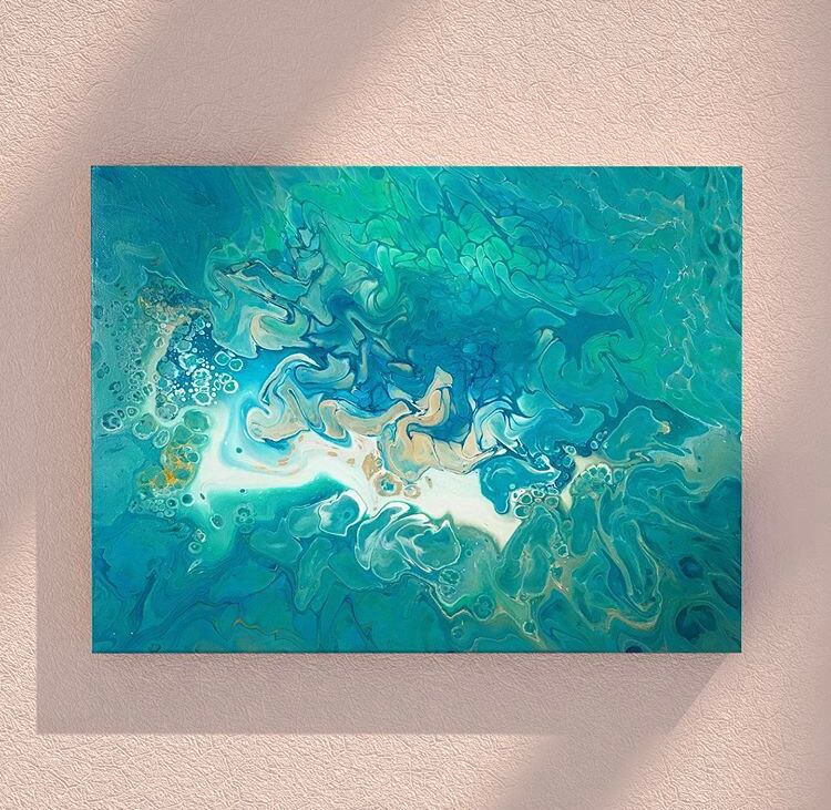 Pouring artをベースとしたオリジナルの方法で作成しております。色を調合する際の微妙な水分量のズレ、調合具合で起きる凹凸やひび割れなど、