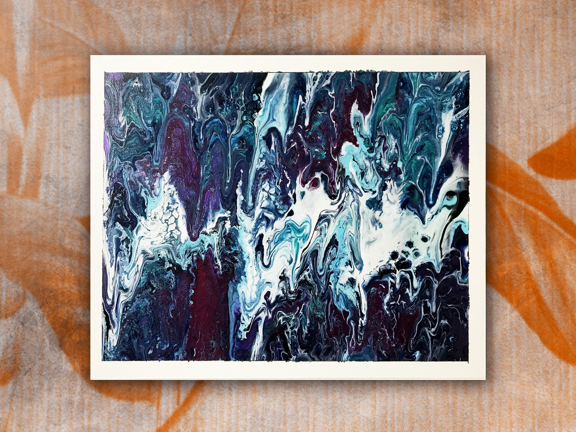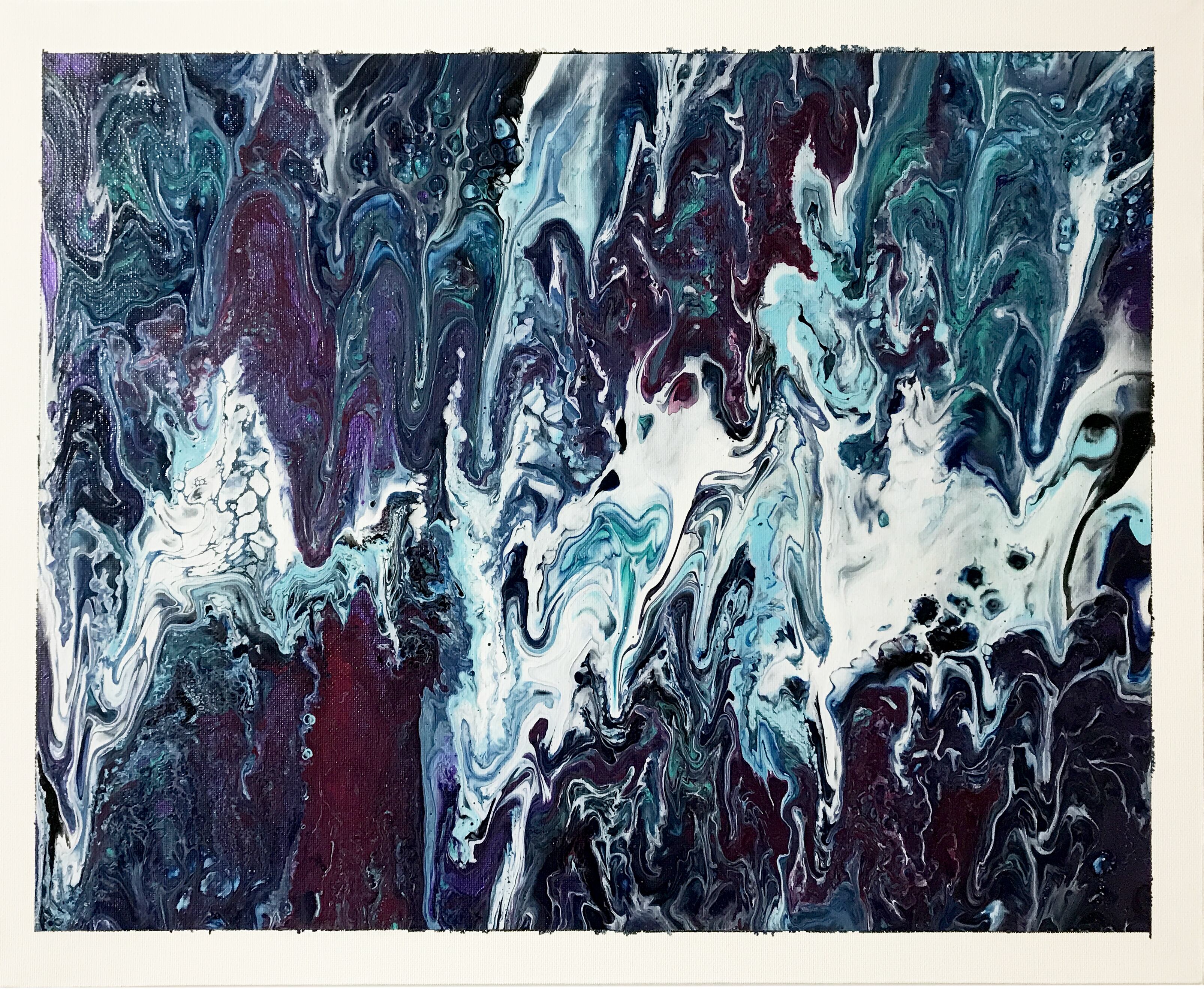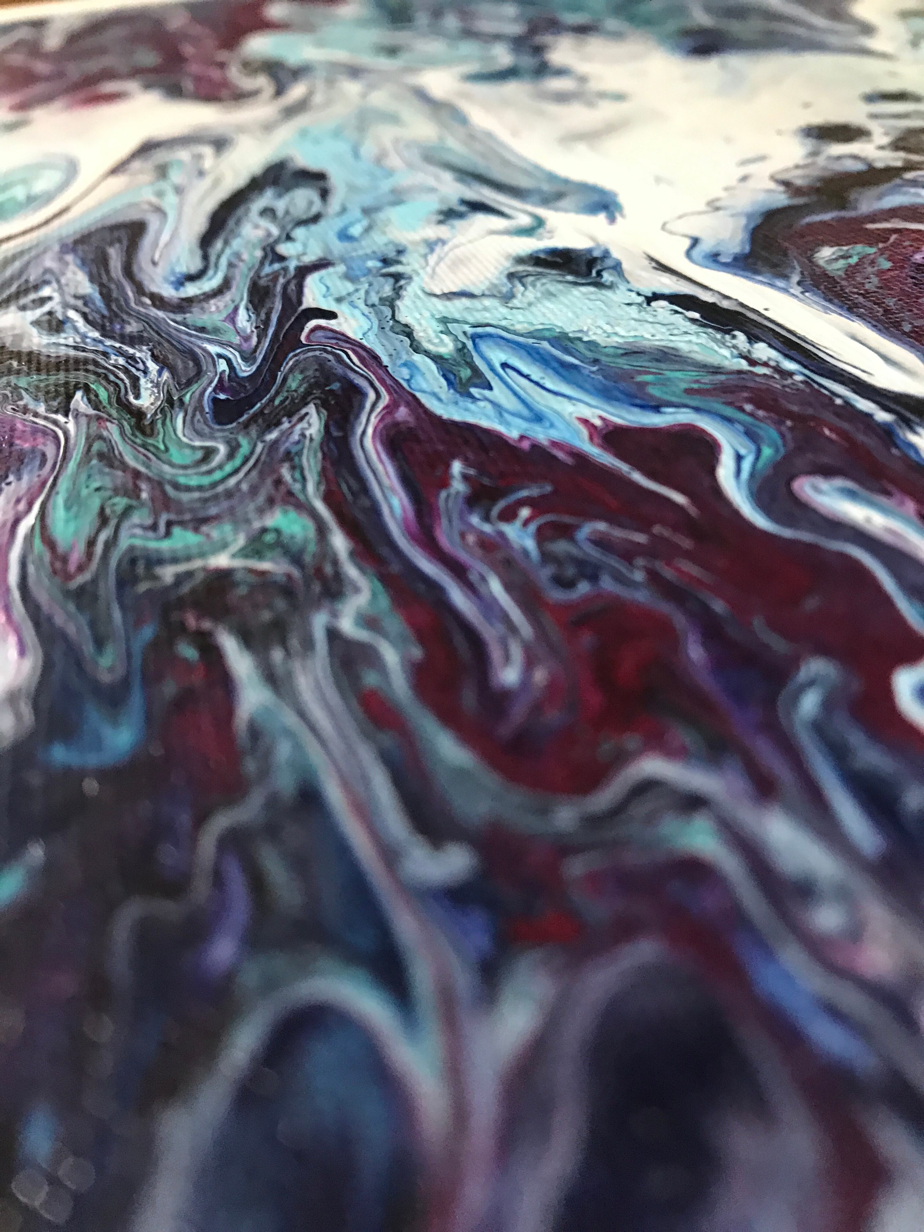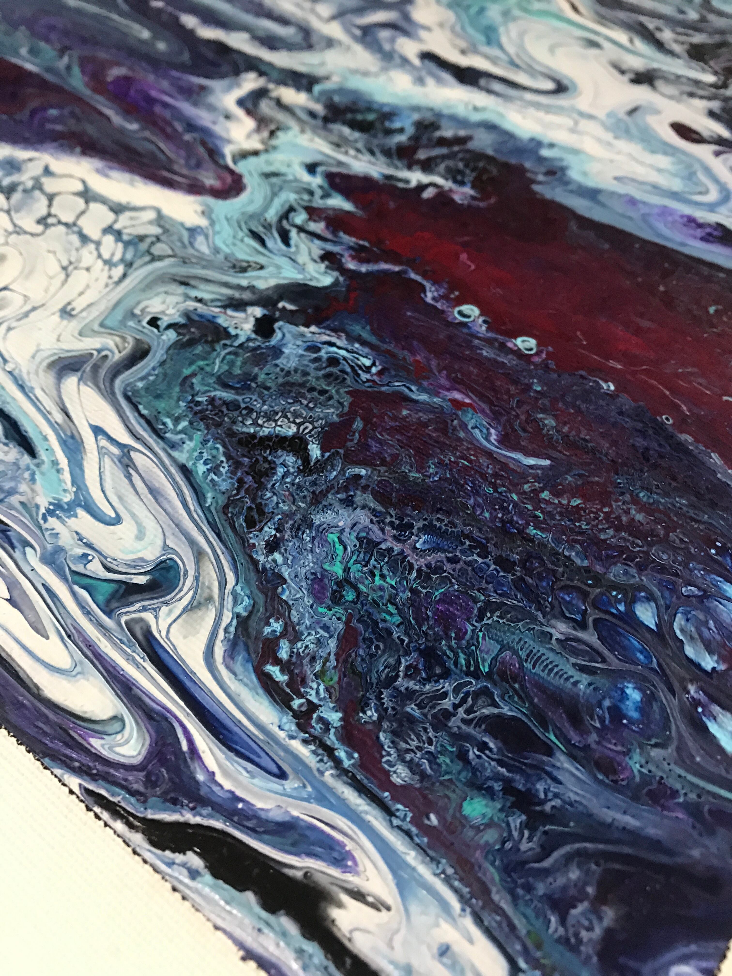 Pouring artをベースとしたオリジナルの方法で作成しております。色を調合する際の微妙な水分量のズレ、調合具合で起きる凹凸やひび割れなど、
