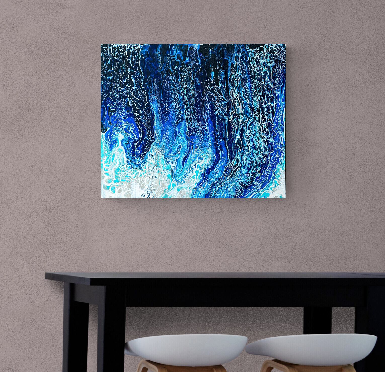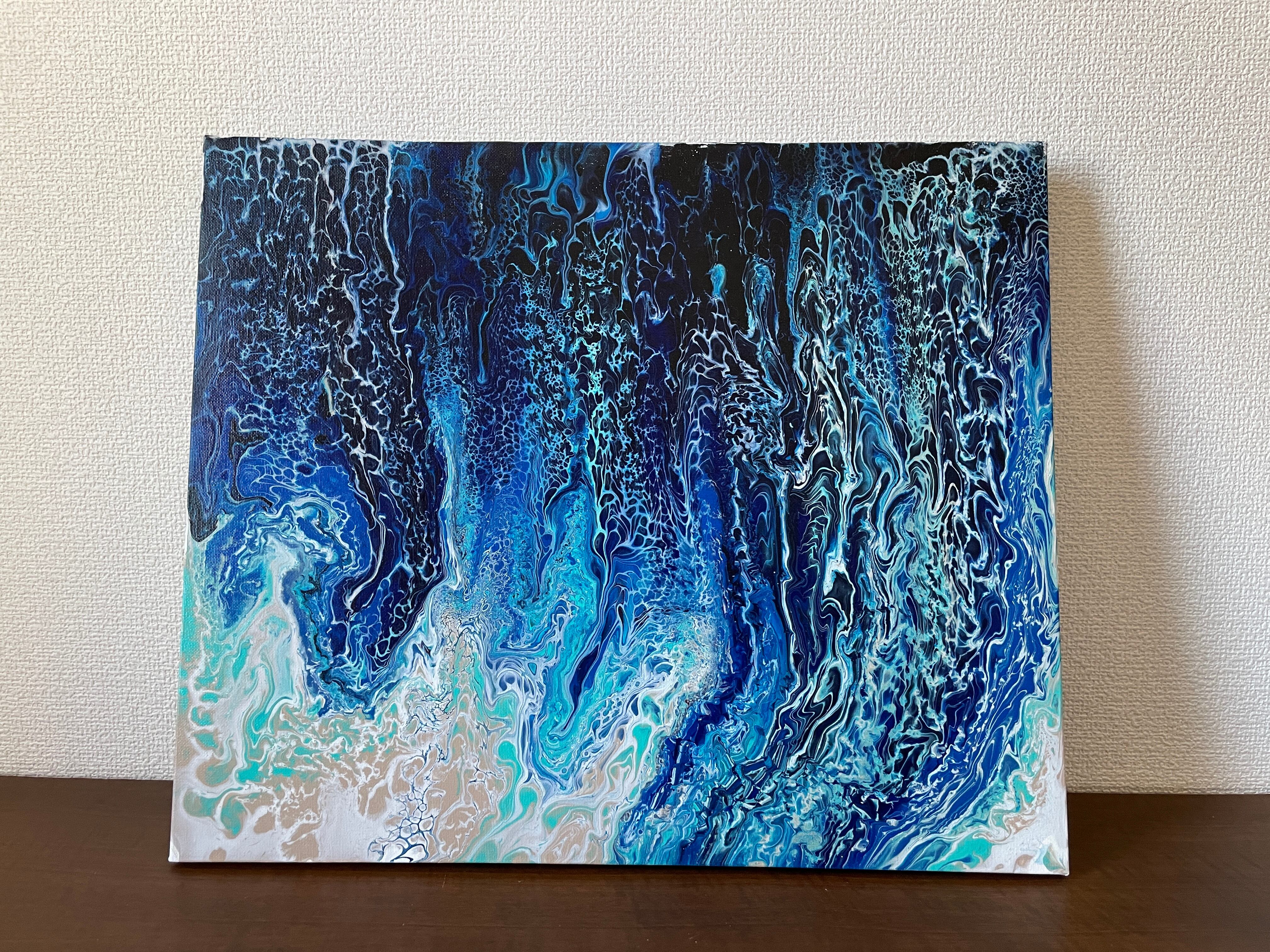 Pouring artをベースとしたオリジナルの方法で作成しております。色を調合する際の微妙な水分量のズレ、調合具合で起きる凹凸やひび割れなど、