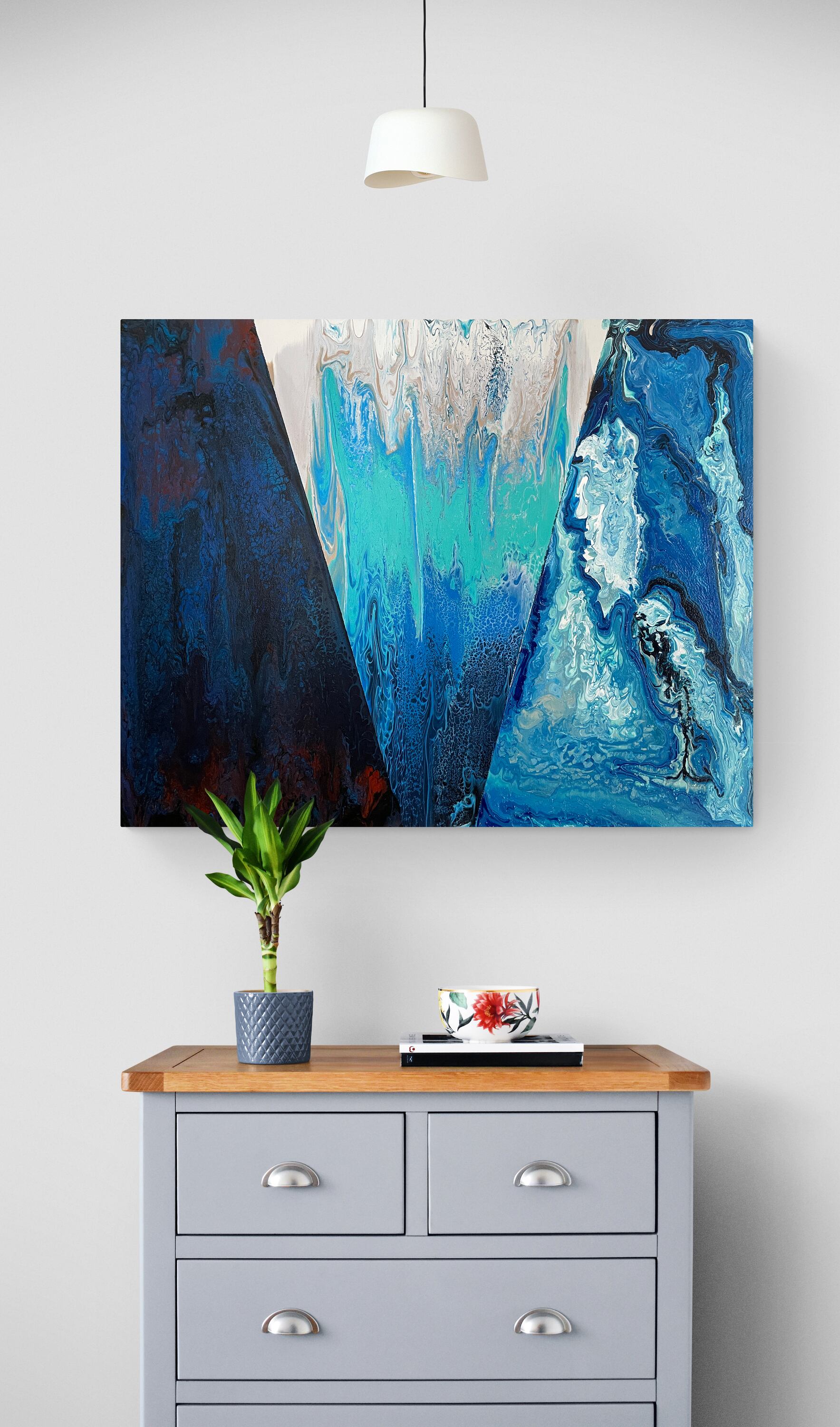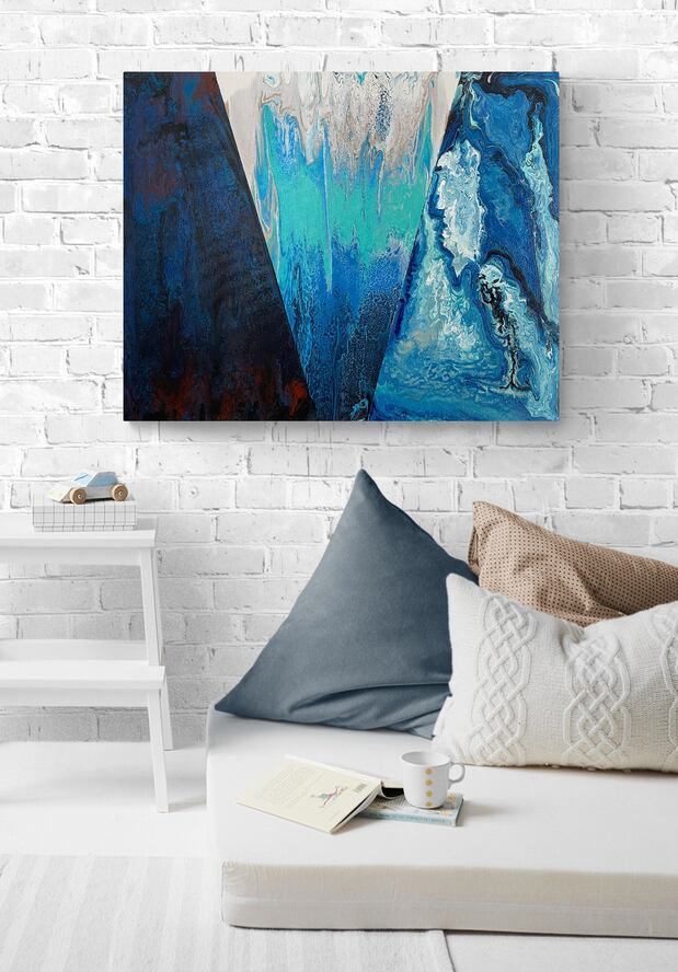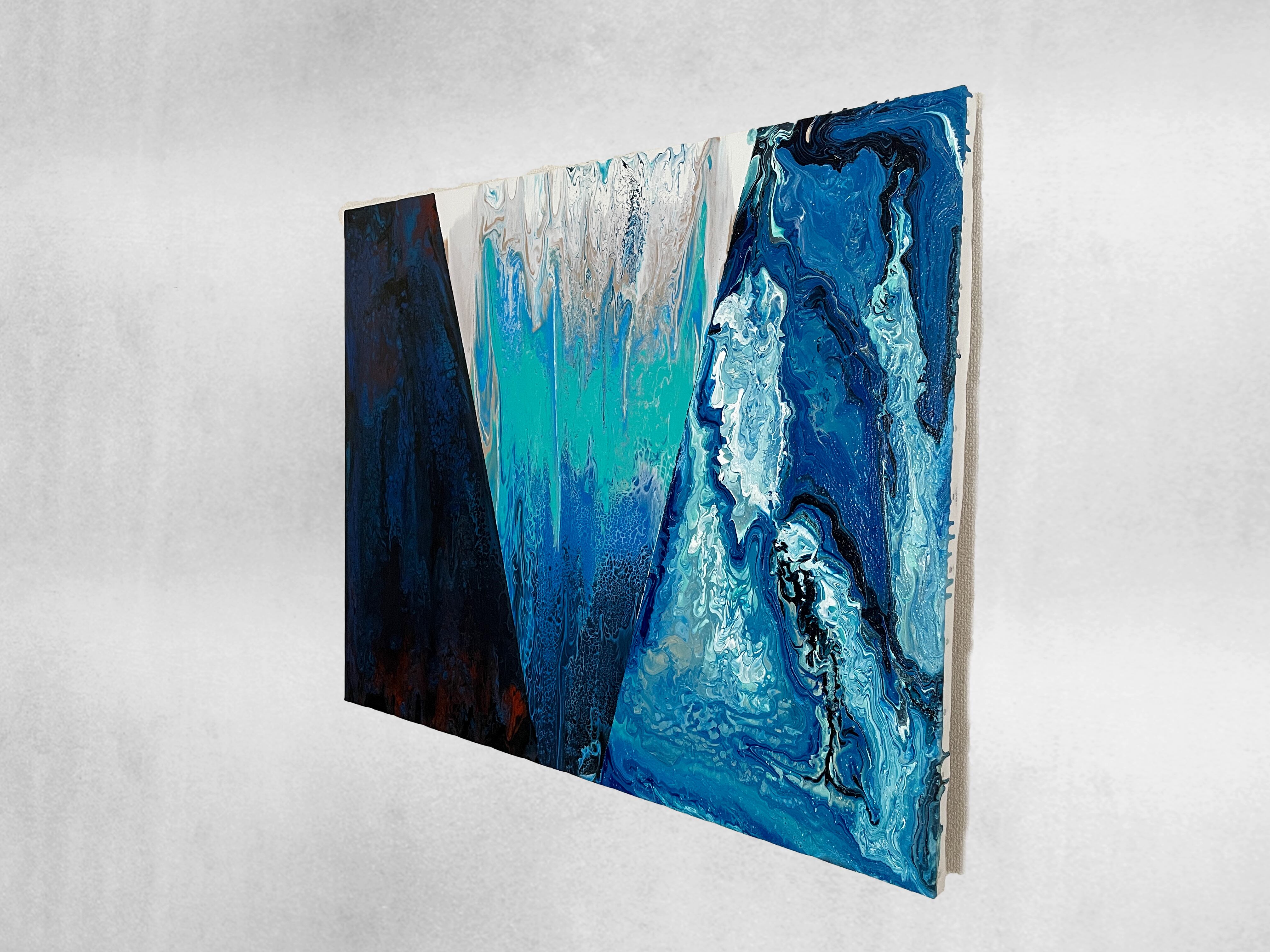 Pouring artをベースとしたオリジナルの方法で作成しております。色を調合する際の微妙な水分量のズレ、調合具合で起きる凹凸やひび割れなど、